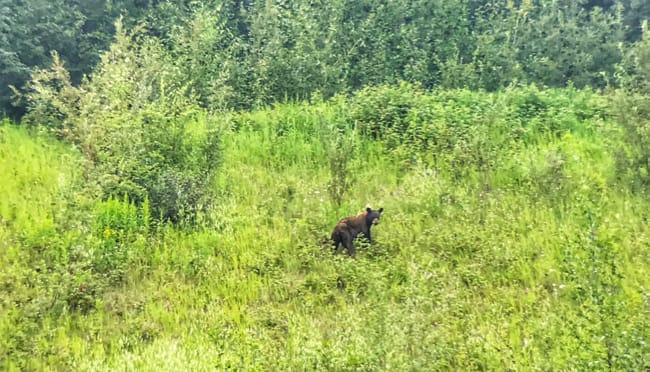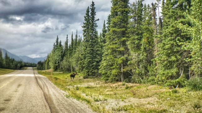 The fantastic landscape along these remote roads of northern BC is only surpassed by the wildlife viewing along the way. In fact, the last few days we find ourselves barely making any progress up the highway at all, simply because we pass another animal every few miles and cycle back to spend some time watching/staring/snapping photos as they avail themselves to us. One afternoon alone saw a couple of bears, some moose, a caribou and bison (as well as smaller wildlife).