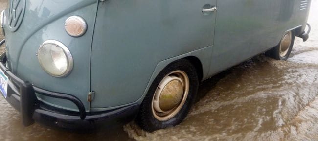 Today the issue isn't only a handful of the roads leading downhill to the bay, but every street now a river with water flowing up to and over the curbs. The delicate task of trying to drive fast enough to not get stuck in the river but slow enough to not rip the wheels off if you encounter an underwater pothole is tedious, and getting in and out of the vehicle almost impossible. We had planned on spending the day at the electrician getting some work done on our ever-dim headlights and nonworking instrument panel but the downpour is too much for he and his team to do any work in the uncovered shop.
