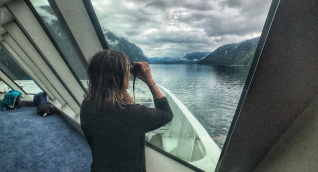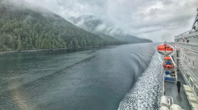 The waters of our passage quickly closed in on each side as the channel narrows down to 1/4mile and at the same time mountains fly upwards 1500-3500’ high on both sides of the boat. It just seemed precarious and unsafe to be taking such a large boat through such a narrow passage, but apparently the landscape plummets even steeper beneath the surface of the water, immediately falling to impressive depth of of 270fathoms. You could almost feel everyone onboard grow quiet and take in a deep breath as the boat passed the narrowest of the channel. Very impressive, and while it wasn’t on our list before- this one is definitely a not-to-miss!!