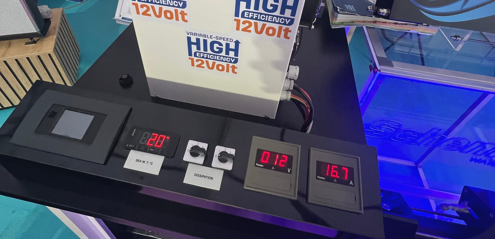 The Frigomar appeared to be the best of what was at the show — running (presumably in eco-mode) and the display showing only 16 amps draw (as opposed to say - 40A) off the battery. Call us intrigued!