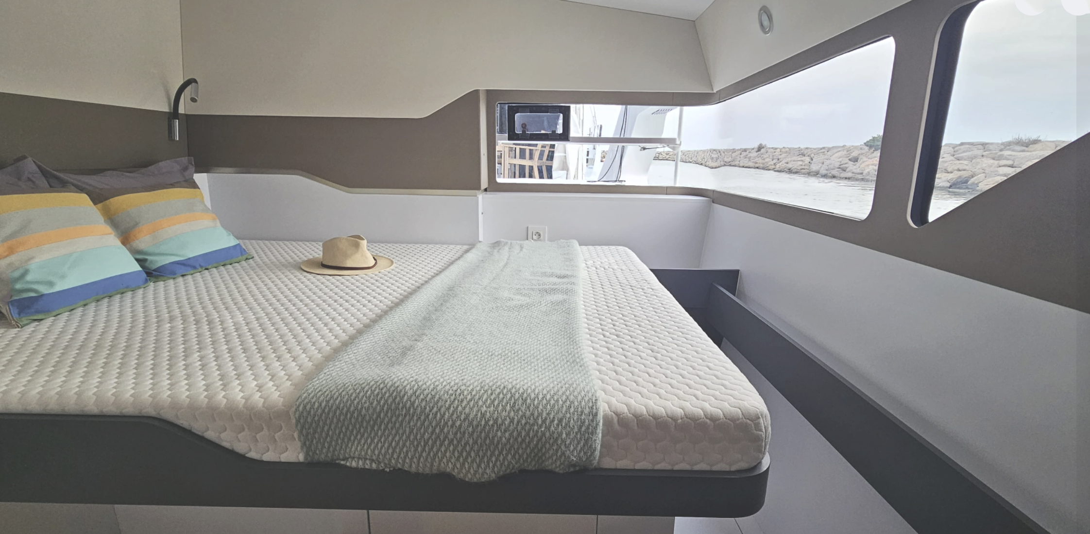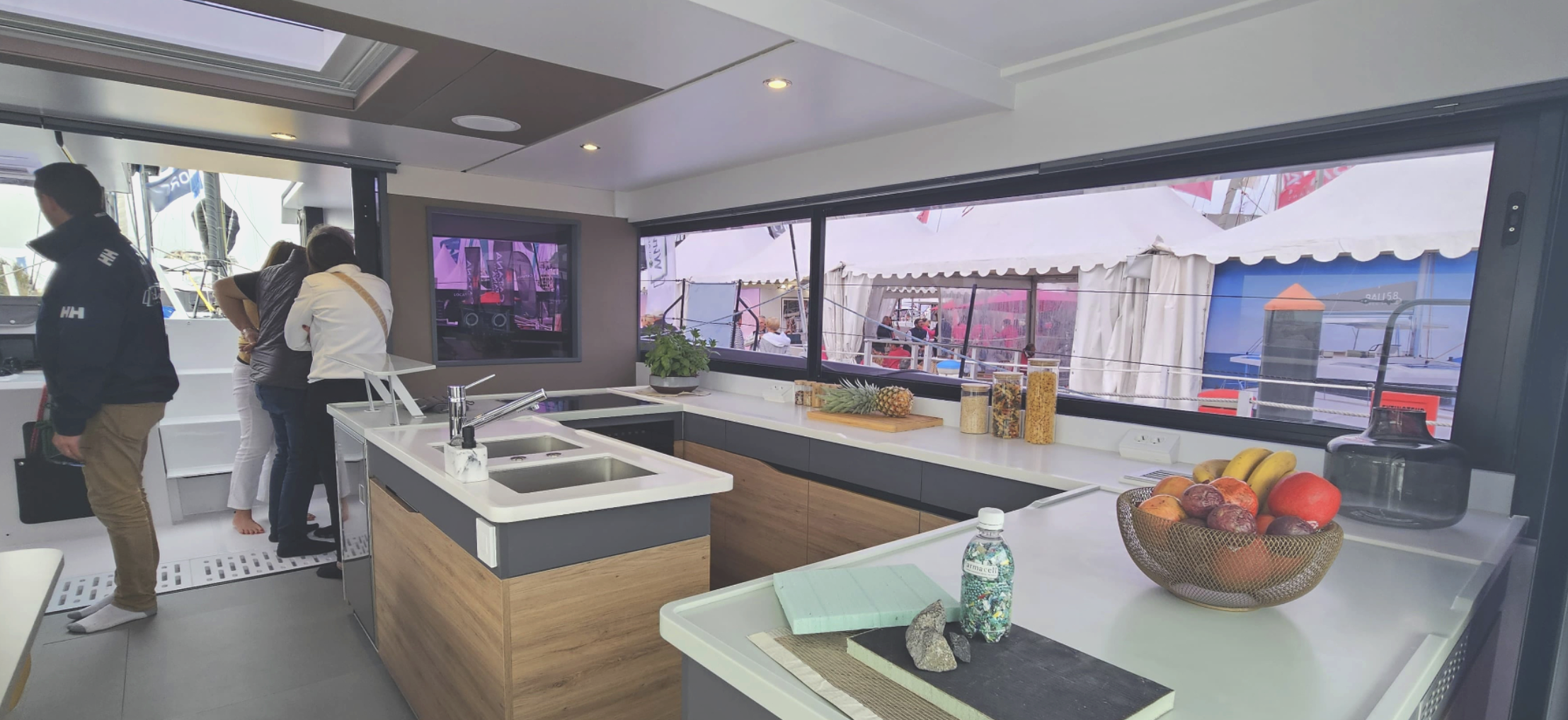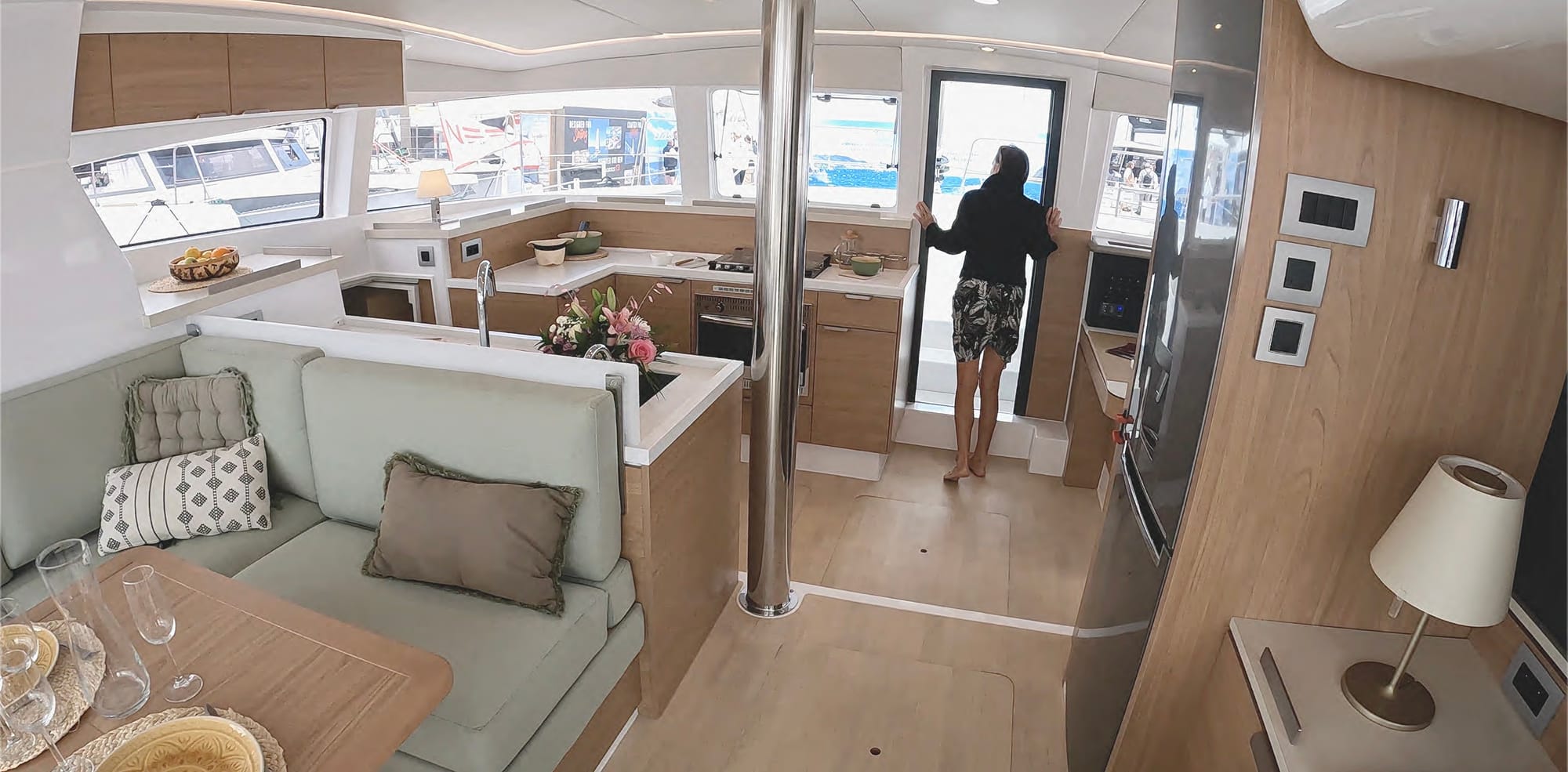 For us, its a beautiful, well crafted boat with integrated electric engines, top notch components and a ton of space for a 44' package thats built to perform. For us though, if Im honest (which i always am) - its the massive windows at the front of the salon. Why is this not happening on every boat?!