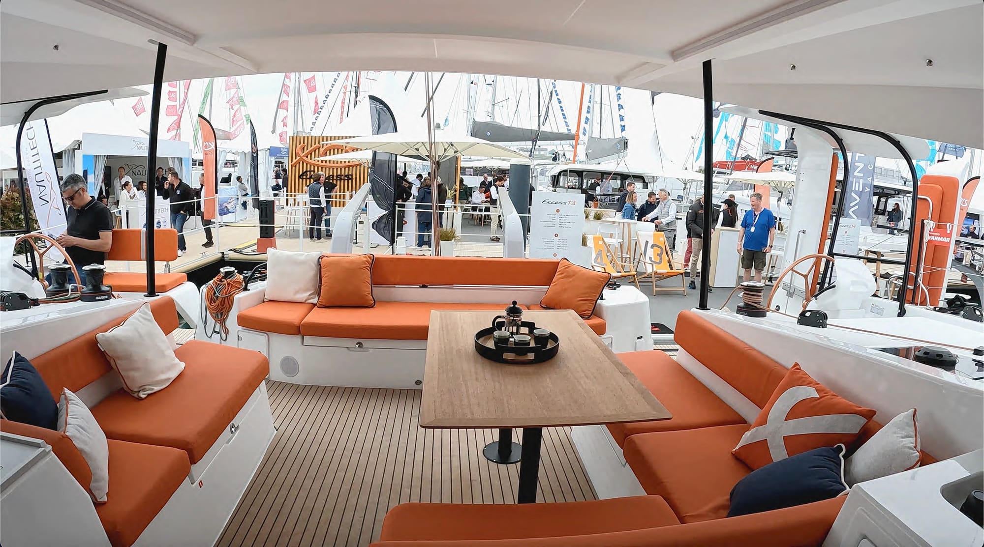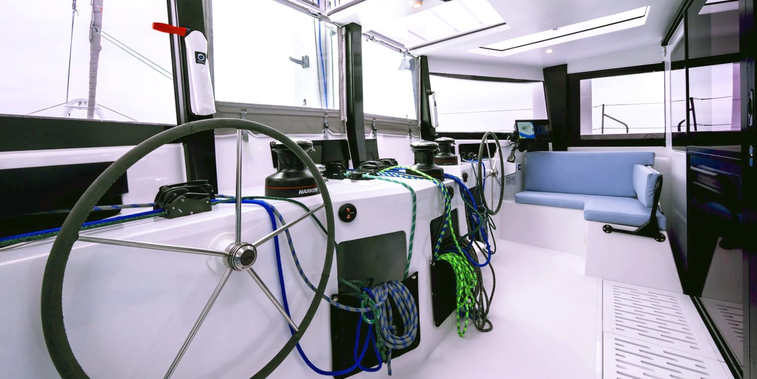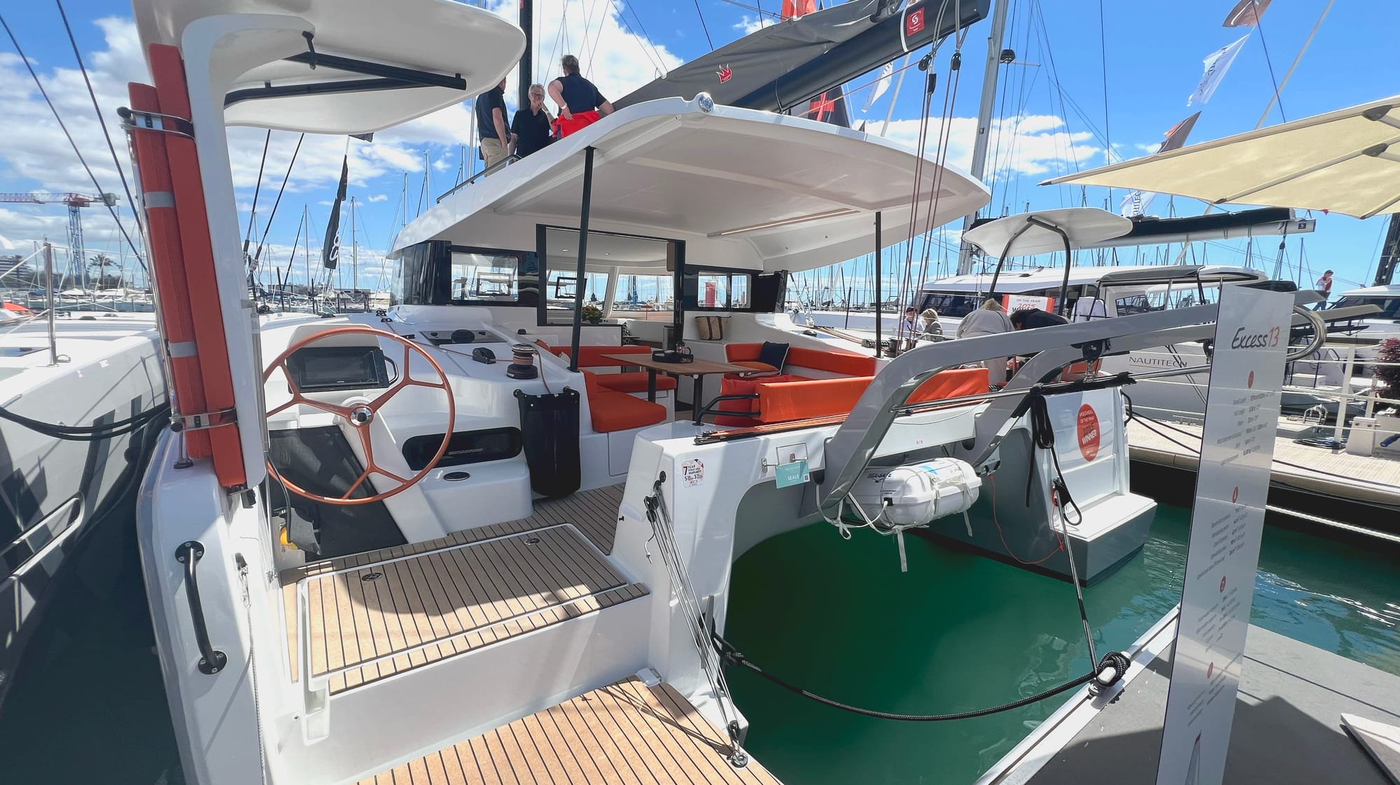 The first several models were still built on Lagoon molds (Excess is part of Group Beneteau), and the Excess 13 is the first truly Excess-DNA "ground-up" build — despite the previous model having performed well - even while still using the Lagoon molds.