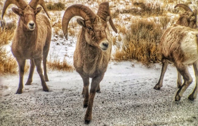 One of our outings delivered a group of bighorn sheep that probably could have (should have) been a bit more shy. Were staring out the window at one set when we hear a "thud" at the back of the sprinter. Turn around and see not one but several goats licking at the van trying to get their salt fix. Funny sight, but we grabbed a few photos and set on our way before a wayward horn dented our home on wheels.