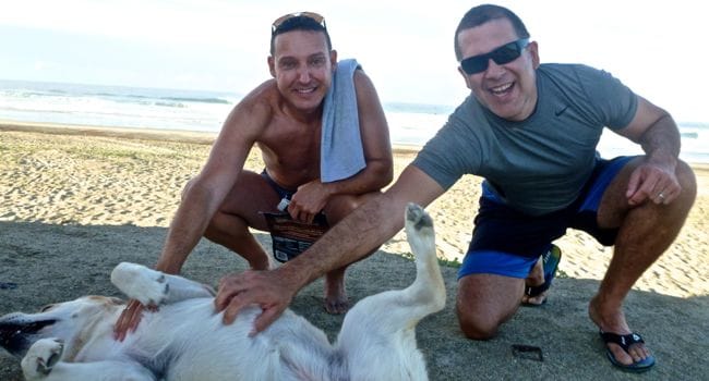 A quick siesta for jen, and we head back to the surf colony for anther chance to get online, enjoy a happy hour drink and swim in their pool. The pool is so comfortable we can't help but stay for one more, but it pays off as we meet Kent, who was drawn in by Karma and he needed a puppy fix. We immediately struck up conversation as he and his wife Lynn are considering an extended trip south of the border as well. We get ready to head back but Kent offers a beer back at his place which turns into happy hour, and then another, and then an invitation to dinner and a late night swim in the ocean and pool. Certainly no shortage of conversation with these two as we have many parallels. They have spent the last decade building and remodeling homes, and the last few years trying to payoff debt…all so very familiar. Also no shortage of giving from these two as they essentially offered for us to move in for a few days only minutes after meeting us. We settled instead for an exquisite dinner and superbly grilled steaks. What a great connection and what a perfect evening on the beach. Sounds like we might just repeat tomorrow night!