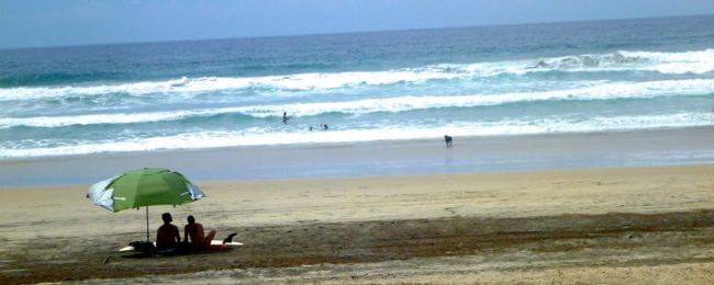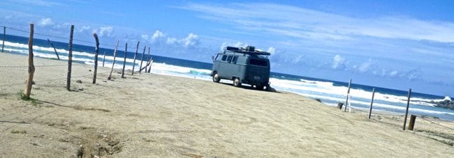 No sooner do they pull out, we return to our tacos and a new vehicle rolls up, this time with new friends. Kellee and Jamie (and their dog Rena) are also driving south and have been on the road about as long as we have, but left from San Diego. They also made better time south and have already been around the cape, so they decided that the best way to spend the rest of uber-hot september was renting a cheap house on the beach north of town. Jen and I have been contemplating the same thing for the last few days and are excited to hear that the option still remains if we decide to stick around. They are the first real travelers we have met on the trip and we take some time to check out their rig and talk about travel stories before Jamie get antsy to jump of his board and hit the surf, so they set up their beach umbrella (we are still in need of one of these) and migrate to the beach.