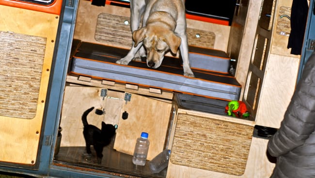 “How do i know that you wont kill me in the night?” she asks. Jen is clearly the perfect person for this job and begins trying to ease her mind. Hoping to be a less commanding presence, I laugh at the kitten crawling around her neck and then squat to take photos of the puppies curled up in wool shavings at her feet. Jen meanwhile is asking what we can do to prove that we aren’t a menace and wouldn’t be any problem. The ranchera listens to Jen’s reasoning and then explains that she lives all alone, has no lights or phone and it’s clear that while she’s visually warming up to superjen she doesn’t seem to be warming up to the idea of us staying. She asks questions about where we are from, why we drove down her solitary dirt road and whether we are married or have kids. We explain that we don’t need to stay anywhere near the house and could simply sleep in the van parked back near the main road. She seems a bit confused, but i mention that there is a bed in the van and she wants to see to confirm our alibi.