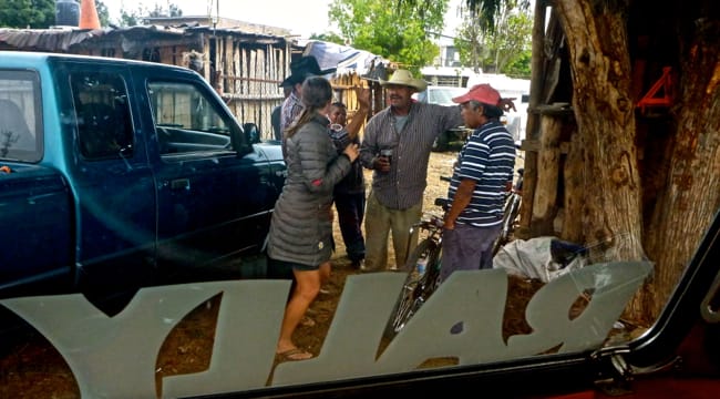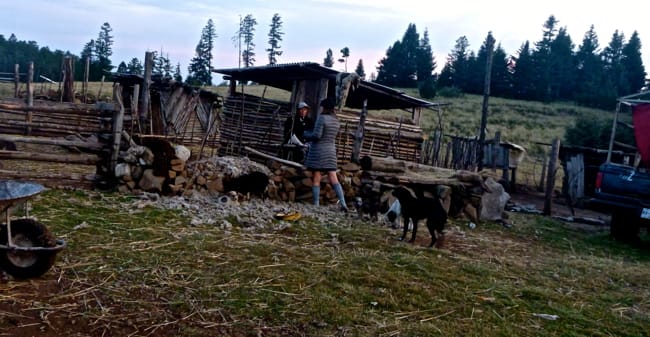 The signs had said 39k to the south reserve, but once we reach the reserve its another 29k to a town...and we are losing light fast. We debate driving through darkness to meet up with a few other teams we know caravanned another hour south but decide to turn around and look for camping. We haven’t camped in the middle of nowhere since baja and it’s painfully fresh in our minds that we are in Michoacan state, where even locals have urged us not to visit due to the violence between two rival cartels. We pull off onto a dirt road as the sun sets and start looking for a protected and discreet parking place. As we drive far enough down the doubletrack to be out of eyesight from the main road Jen thinks she spots a building. Not what we were hoping. Now we have to make the decision to either u-turn and look for another turnout or ask permission. We rather think we should turn around but the track has no open space until we reach a tiny stick built casita and several stables/coops.