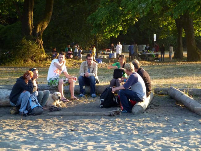 After helping Urban Rec packed away the nets, we fired up the bbq. Chef George grilled up some delish steak and chicken, Anca brought Smokies, and we made a coconut rice and bean dish which will now be a new staple in our lives. We rounded it out with grilled Rosemary Garlic Bread. The Volleyball, the sunset, the cool peops, the happy dog, This is Vancouver living.