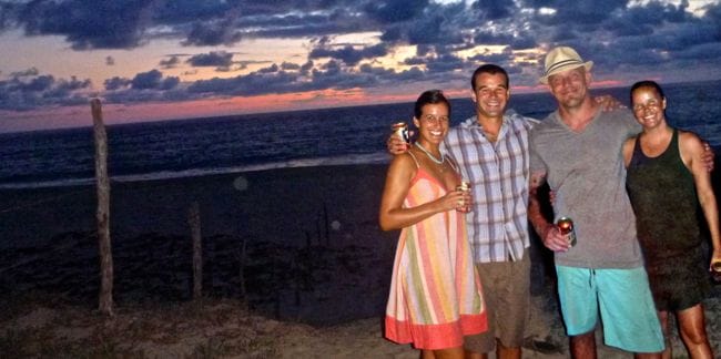 Jamie and I bodysurf while the ladies talk and the dogs play with a coconut- and we spend the entire day relaxing under umbrellas and enjoying the breeze with a beer and homemade ceviche. Not a horrible way to waste a day! Kellee and Jamie are super enjoyable, which is great for us as we are likely to encounter them again and again throughout our trip south. You can check out their blog Tranquilo Adventures.