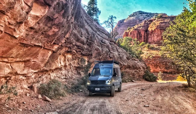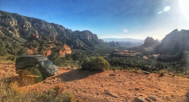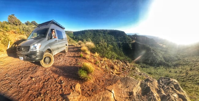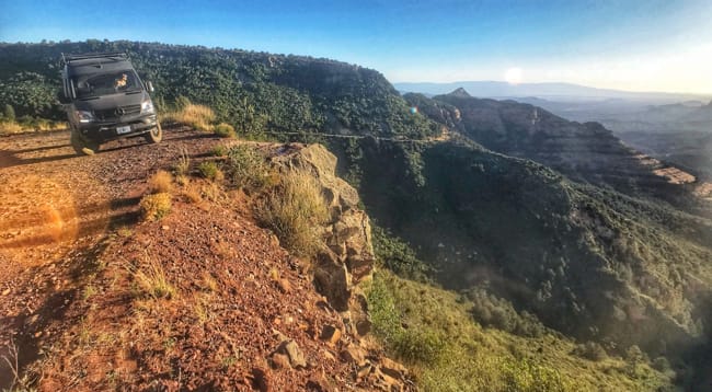 We turned off onto the trail, aired down the tires and set out on what ended up being about an hour of really rough terrain. The sprinter handled it great and other than the offroad tour jeeps we hardly passed another vehicle. The road gains elevation quickly and views looking down over the valley and the towering red rock buttes are exquisite.
