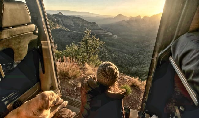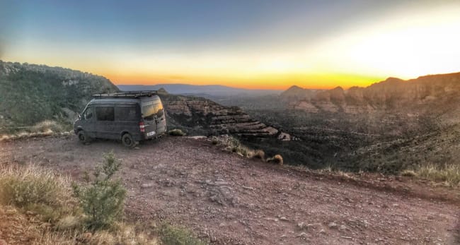 Finally at the summit, jen and I pulled over to pour a cocktail, watched an epic sunset over hanging over the cliff, and watching the colors change on the valley and red rocks beyond. Eventually we welcomed Rich and Ash as they made their way up the hill after a few local hikes. Not so many years ago we would have joined them. Jumped at the chance to take in this landscape and wildnerness on foot, but with Karma getting up in years (she's turning 90 soon) we obviously find ourselves doing less hiking and activity as we move through an area. We obviously miss it, but wouldn't even consider leaving her in the car for that long in this heat and rarely choose to brea up the family. ;)
