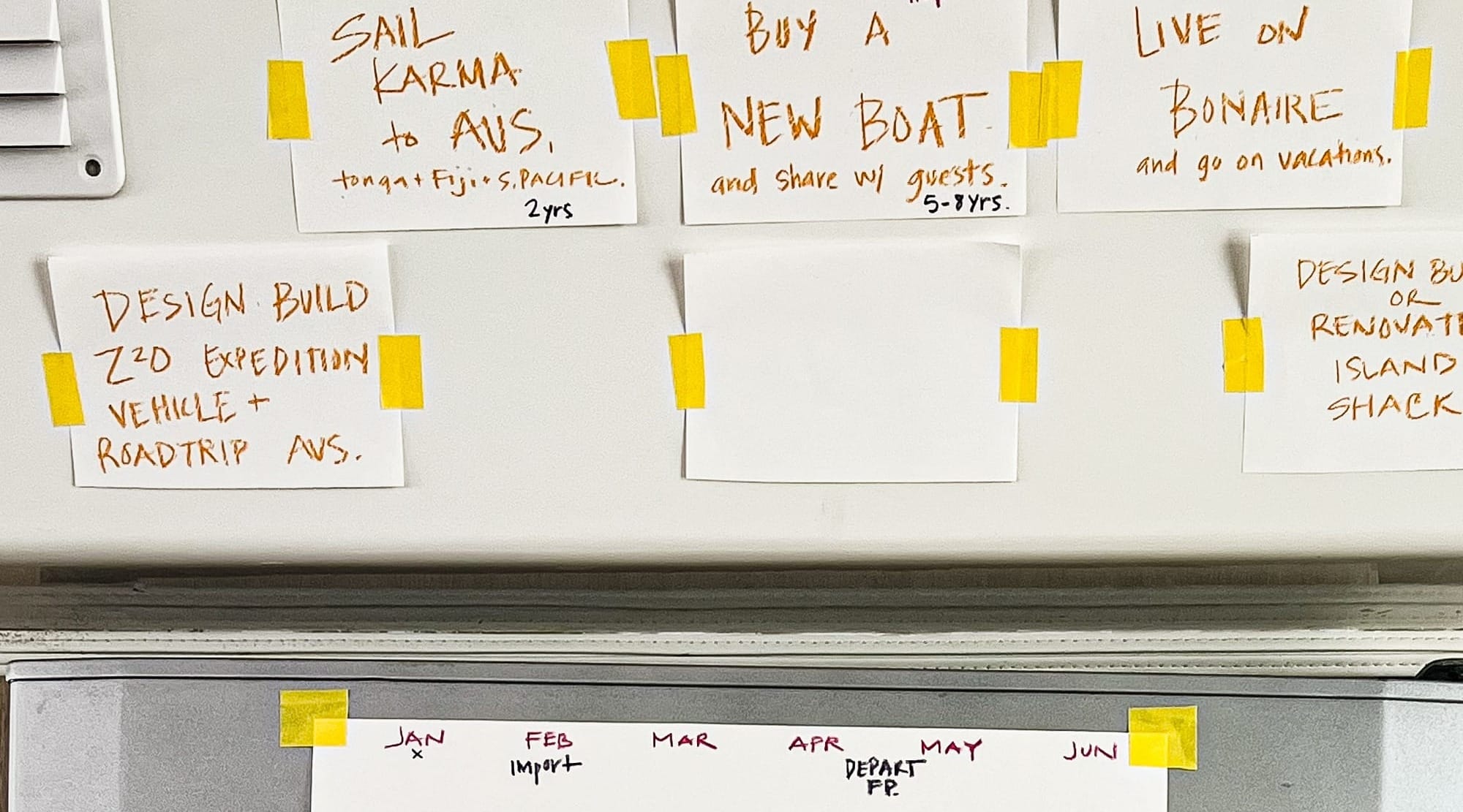 Anyway - that’s the current exhaustive list of potential paths (so far). We are still throwing things on the wall to see what sticks. At one point we even discussed using a single piece of tape for all the cards and seeing what was left after mother nature blew the rest off the wall while we sail to the next atoll. Seems very fitting on one hand since mama nature in the end gets final say in everything - but also just feels like us trying to avoid a decision. ;)