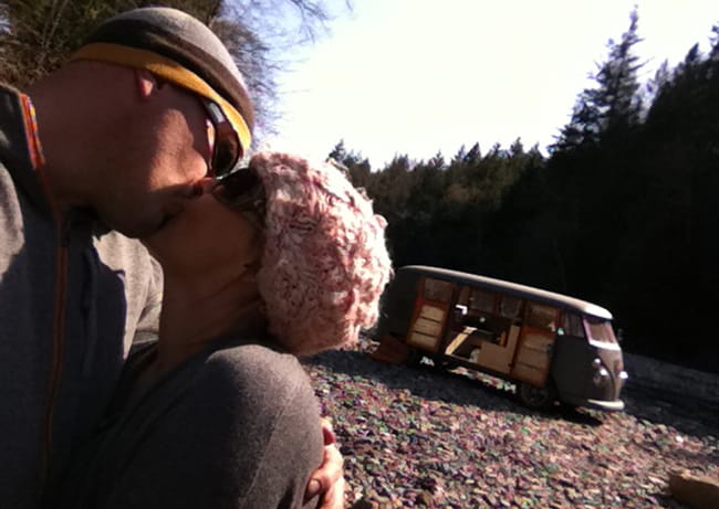 Almost sunset a westy pulled up and stopped to check out the bus. The passenger hopped out and said hello and we suggested they pull in for the night. The couple ended up being awesome, and we made new friends over the campfire. Gina and Andrea live off the drive (maybe our favorite neighborhood in the city) and possibly more importantly than that- they helped us name the bus. Apparently, "everybody knows" that you are supposed to name your bus after the first place you...well...had romantic interactions. The next morning we drove off in Everett. Later we realized we hadn't thought to ask whether they meant the first time ever, or the first time in the bus. Lucky for us, both options begin with an E, so while we are pretty sure the official name of the bus is Everett, we decided we better call it E to be sure.