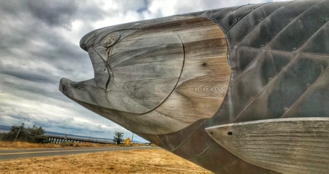 Luckily, that theory held and just as jen was walking back to the van a fish grabbed on and despite the fight the line held enough to bring it into shore. I grabbed the fish, picked up my flies and other gear and sprinted up the beach carrying my first salmon and by far the largest fish I’ve ever caught. We decided to simply camp in the pullout and grilled up the fish for dinner. We could really get used to this routine of catching our meals moments before eating them!