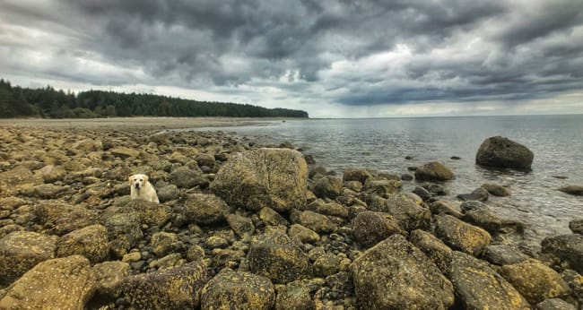 We also hopped a ferry over to sandpit on the lower island.Even less of this (even more remote) island can be explored by road, but that didn’t stop us from seeing every inch of it we could.At one point we pulled over, thinking we would enjoy a quick snack while beachcombing and then continue onward… but as we walked the beach we caught glimpse of fish jumping like crazy along the shore.There seemed to be no limit to them and they weren’t small by any means.